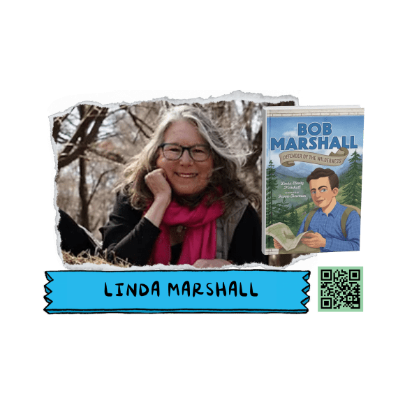 Award-winning author Linda Elovitz Marshall studied cultural anthropology at Barnard College/Columbia University. After raising four children and a small flock of sheep, she pursued (but didn’t catch) a Ph.D. in anthropology, owned/operated an indie bookstore, then began writing for children. BOB MARSHALL: DEFENDER OF THE WILDERNESS (2024 Library of Congress National Book Fair selection – Montana) began because her husband is also named Bob Marshall. Linda loves researching, hiking, swimming, travel. Linda and Bob divide their time between a cabin in New York State’s Adirondack mountains and an island where cars are unnecessary: Manhattan! www.lindamarshall.com
