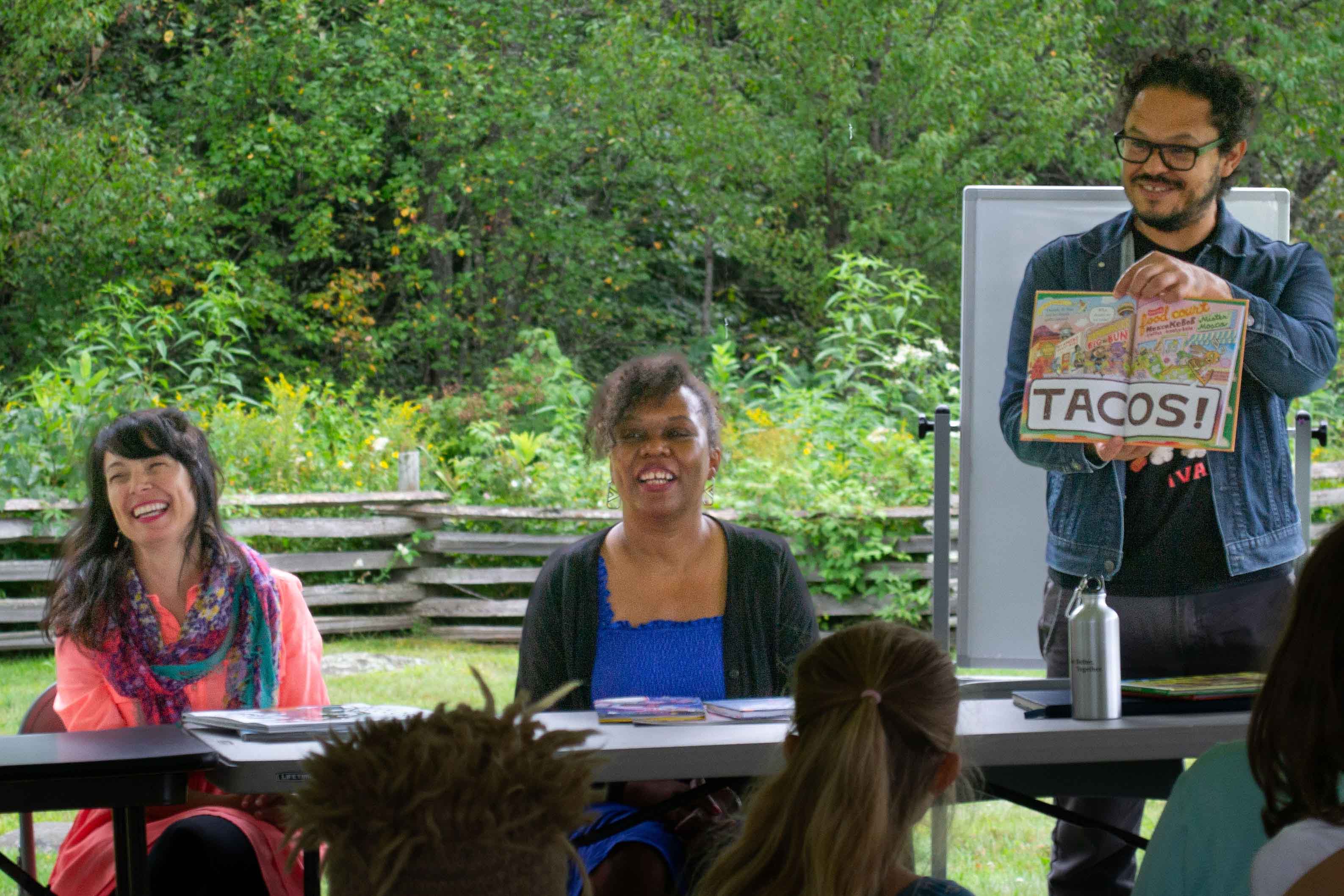 a powerful line-up of authors and illustrators, with multicultural and multi-gender backgrounds. This made for rich presentations and discussions. I loved the panel when the authors read a piece of their own writing. To hear their writing in their own voice gives such perspective. I appreciated the thoughtfulness given to the speaker panels – the topics, the timing, sticking to the schedule. It was wonderful to see so many families, of all ages, and to have the teenagers involved in presenting the